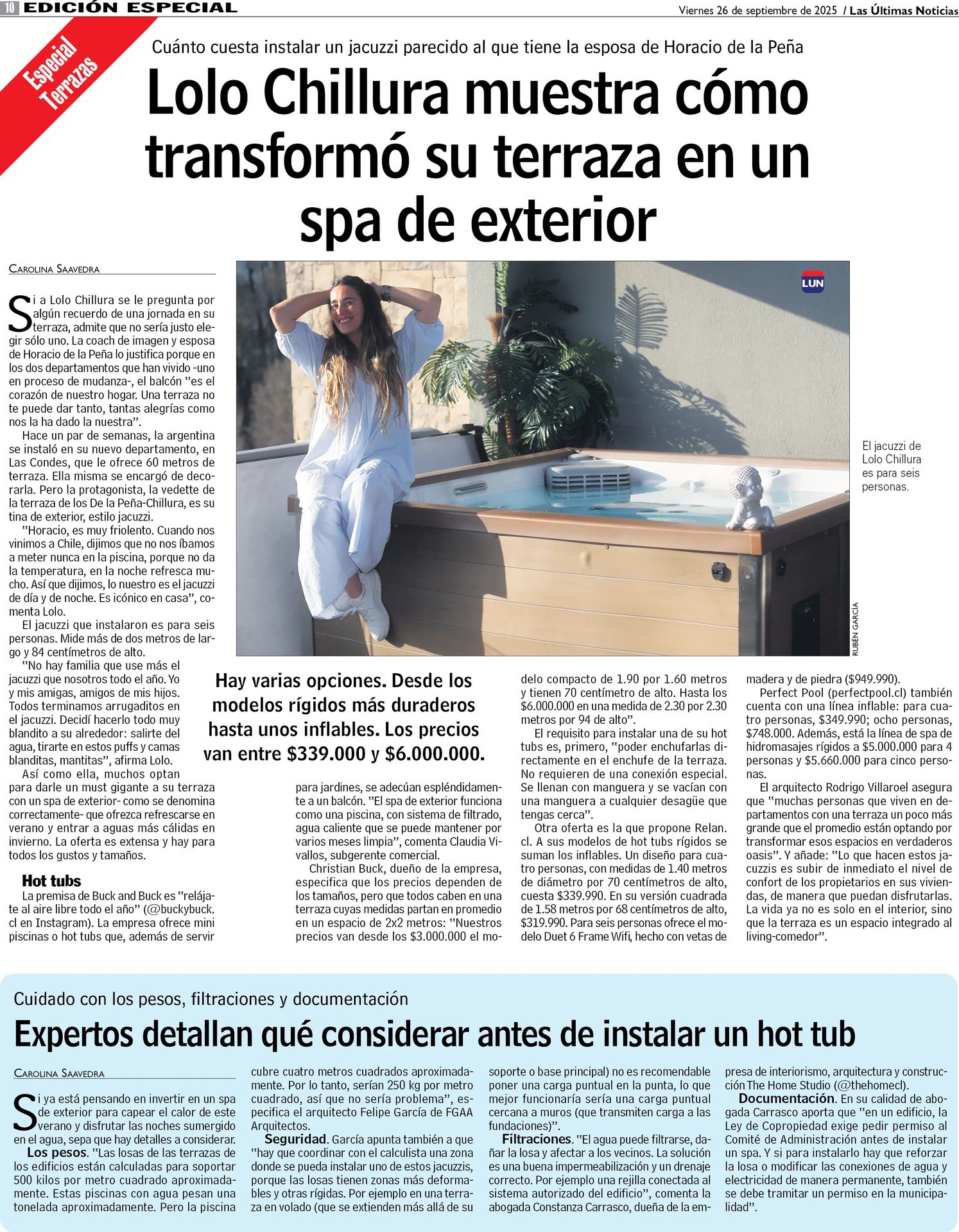 Te compartimos un artículo de Las Últimas Noticias, donde fuimos entrevistados acerca de los spas de exterior: